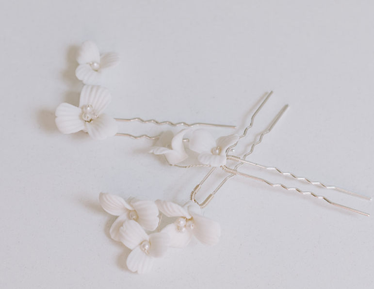 Porcelain Flower Hair Pin Set